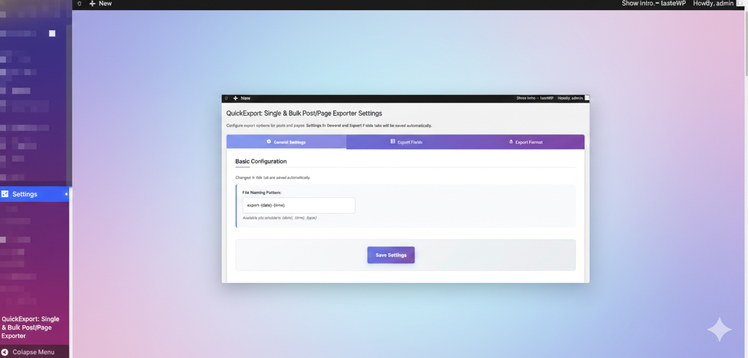 - Go to Settings QuickExport: Single & Bulk Post/Page Exporter to configure options