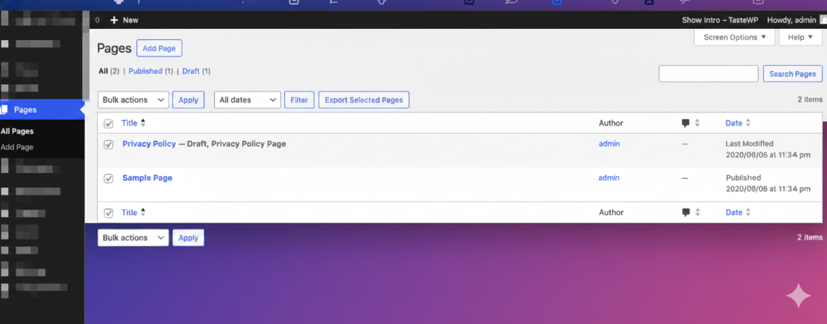 - Single & bulk post/page export